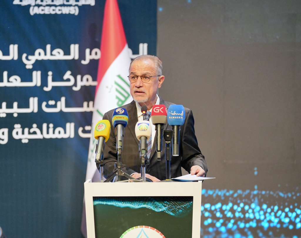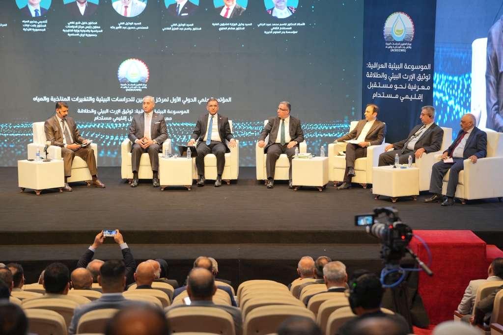 برعاية دولة رئيس الوزراء المهندس محمد شياع السوداني، وبحضور وزير البيئة ومحافظ البنك المركزي، اختتمت في بغداد السبت ١٨ تشرين الاول ٢٠٢٥، اعمال " المؤتمر العلمي الدولي الأول لمركز العلمين للبيئة والتغيرات المناخية والمياه" تحت شعار " الموسوعة البيئية العراقية: توثيق الإرث البيئي وانطلاقة معرفية نحو مستقبل إقليمي مستدام" ، وناقش المؤتمر، خلال يومين، وعبر سبعة جلسات علمية تخصصية ، وبحضور الممثل الخاص للأمين العام للأمم المتحدة والمنسق المقيم للعراق السيد غلام إسحاق زاي، والسفيرين الإيراني والتركي في بغداد بصحبة وفود بحثية واكاديمية من البلدين، والمدير العام للمركز العربي لدراسات المناطق الجافة والأراضي القاحلة الدكتور نصر الدين العبيد، وممثلين عن وزارات الخارجية والتخطيط والبيئة والموارد المائية والصحة والزراعة وهيئة الاعلام والاتصالات ومكتب البيئة والتغير المناخي في هيئة المستشارين، وعدد كبير من الخبراء والاكاديميين من داخل العراق وخارجه، تعزيز الشراكة العلمية بين العراق ودول الجوار للقضاء على الظواهر الناجمة عن الاحتباس الحراري وشح المياه، وهجرة السكان ودعم الجهود الحكومية والأكاديمية لمواجهة تحديات البيئة وارتدادات التغير المناخي، لخدمة التنمية المستدامة، فضلاً عن صياغة جهود الخبراء في مبادرات قابلة للتطبيق. الممثل الخاص للأمين العام للأمم المتحدة والمنسق المقيم للعراق السيد غلام إسحاق زاي، والسفيرين الإيراني والتركي في بغداد بصحبة وفود بحثية واكاديمية من البلدين،
