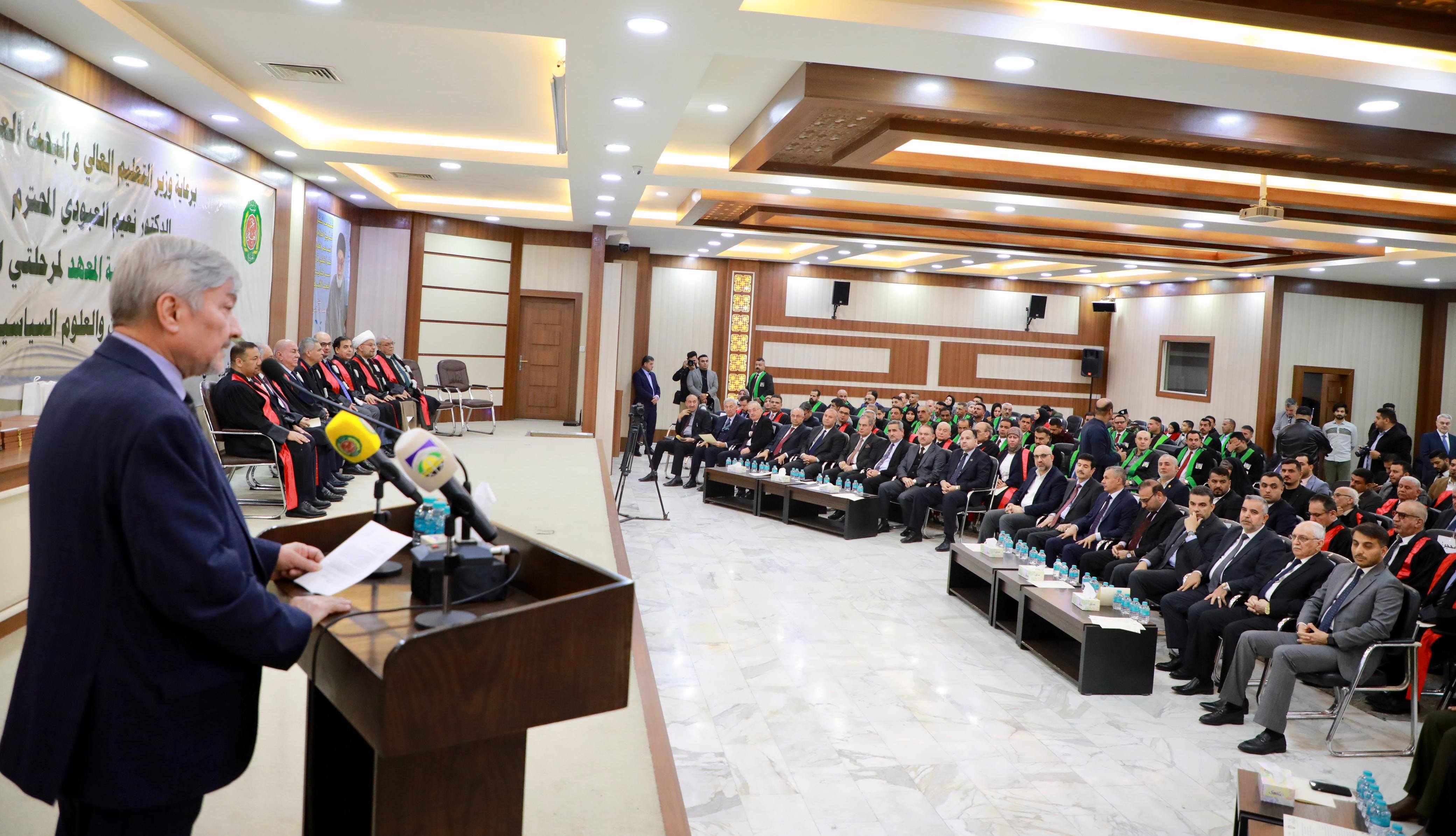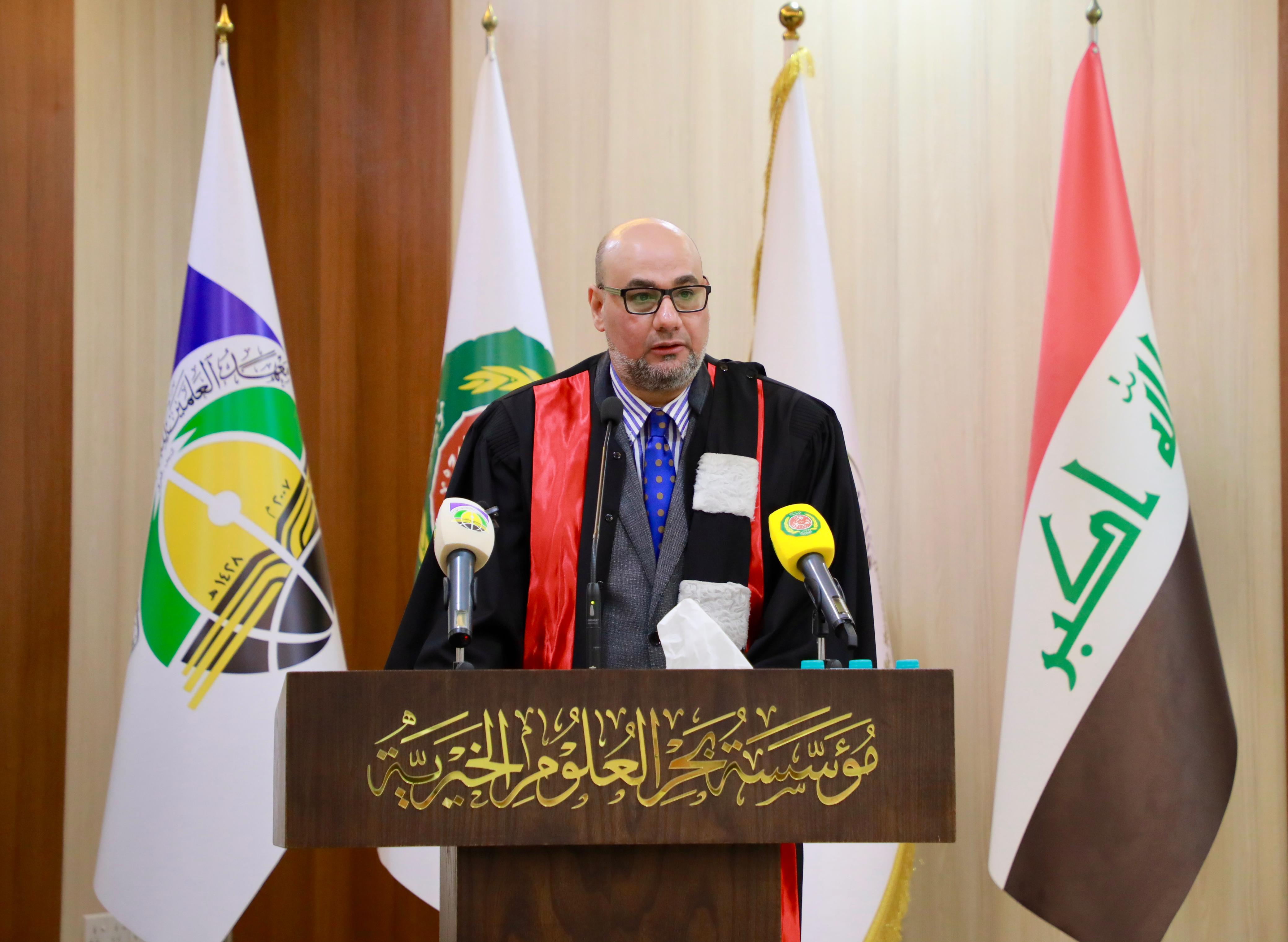 In his address, Dr. Ibrahim Bahr Al-Uloom, General Supervisor of the Bahr Al-Uloom Charitable Foundation, emphasized the Institute’s commitment to attracting distinguished Iraqi scholars in the fields of law, political science, and media, in order to strengthen the academic, scientific, and research outputs of the Institute.