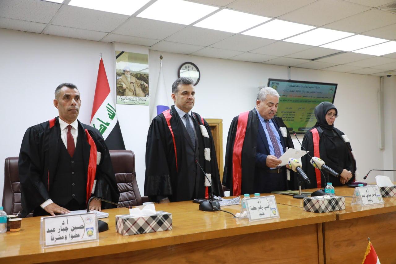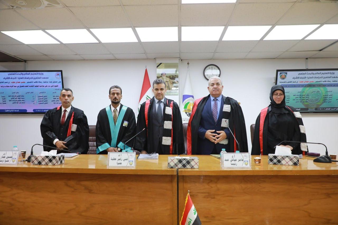 جرت في قسم القانون بمعهد العلمين للدراسات العليا، السبت ٤ تشرين الأول 2025، مناقشة رسالة الماجستير الموسومة "القيود التي ترد على صلاحية المحكمة الاتحادية العليا بالعدول عن مبدأ اقرته سابقا _ دراسة مقارنة" للطالب "محسن حمدان جلوب" و ترأس لجنة المناقشة ا.د عامر عياش عبد من معهد العلمين، وضمت لجنة المناقشة ا.د غني زغير عطية من كلية القانون جامعة الكوفة، و ا.م.د نجلاء مهدي محسن من معهد العلمين، و ا.د حسين جبار عبد من كلية القانون جامعة بابل عضواً ومشرفاً، وبعد مناقشة مستفيضة تم إجازة الرسالة.