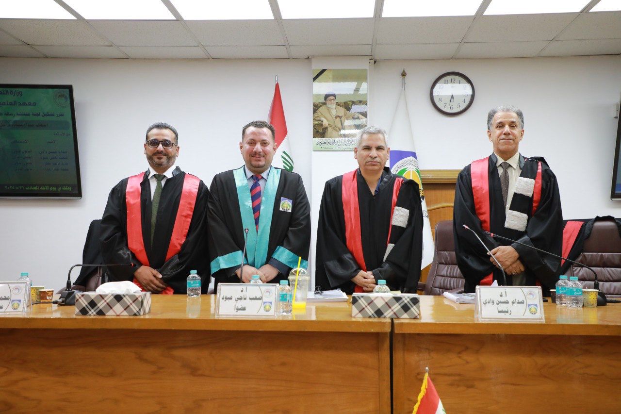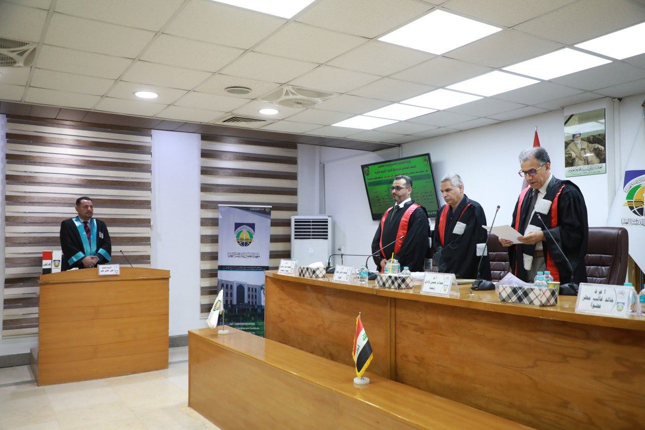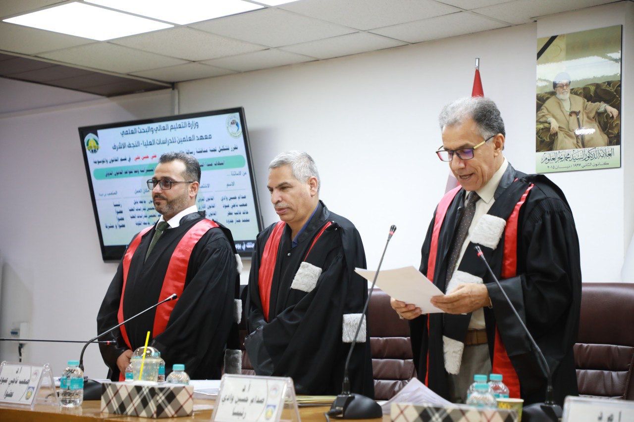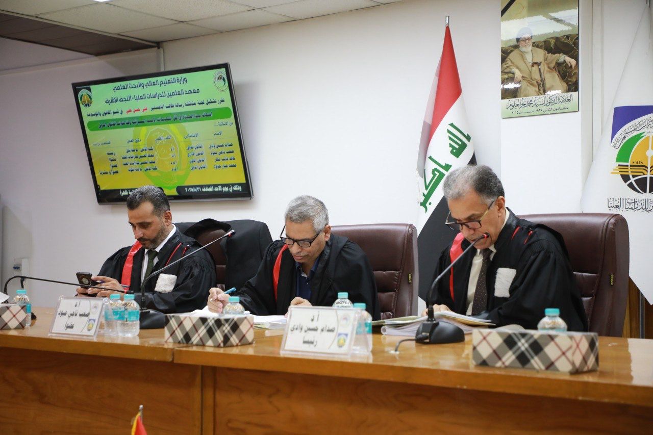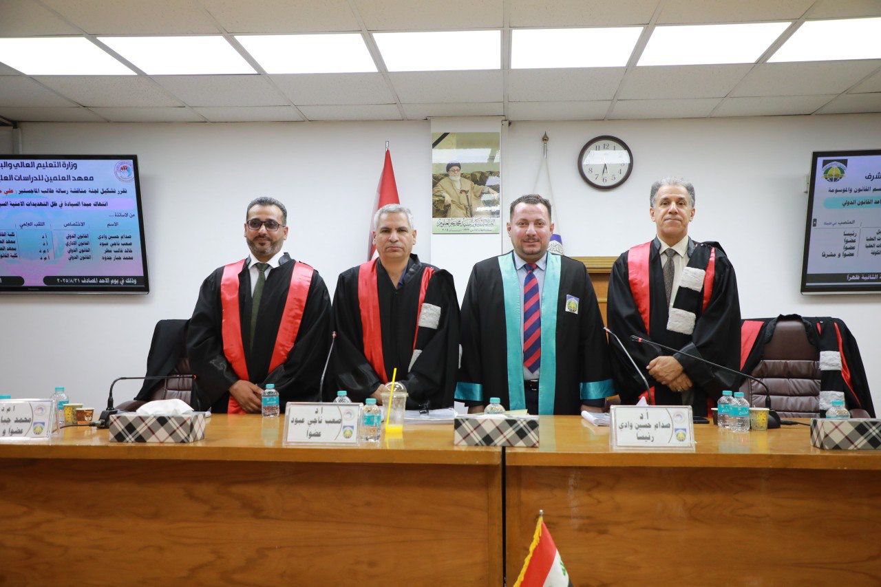 جرت في قسم القانون بمعهد العلمين للدراسات العليا، السبت ٢٣ آب 2025، مناقشة رسالة الماجستير الموسومة "انتهاك مبدأ السيادة في ظل التهديدات الأمنية السيبرانية وفقاً لقواعد القانون الدولي" للطالب "علي حسن علي" و ترأس لجنة المناقشة ا.د صدام حسين وادي من كلية القانون جامعة بابل، وضمت لجنة المناقشة ا.د صعب ناجي عبود رئيس قسم القانون بمعهد العلمين، و ا.م.د خالد غالب مطر من معهد العلمين، و ا.م.د محمد جبار جدوع من كلية القانون جامعة الكوفة عضواً ومشرفاً، وبعد مناقشة مستفيضة تم إجازة الرسالة.