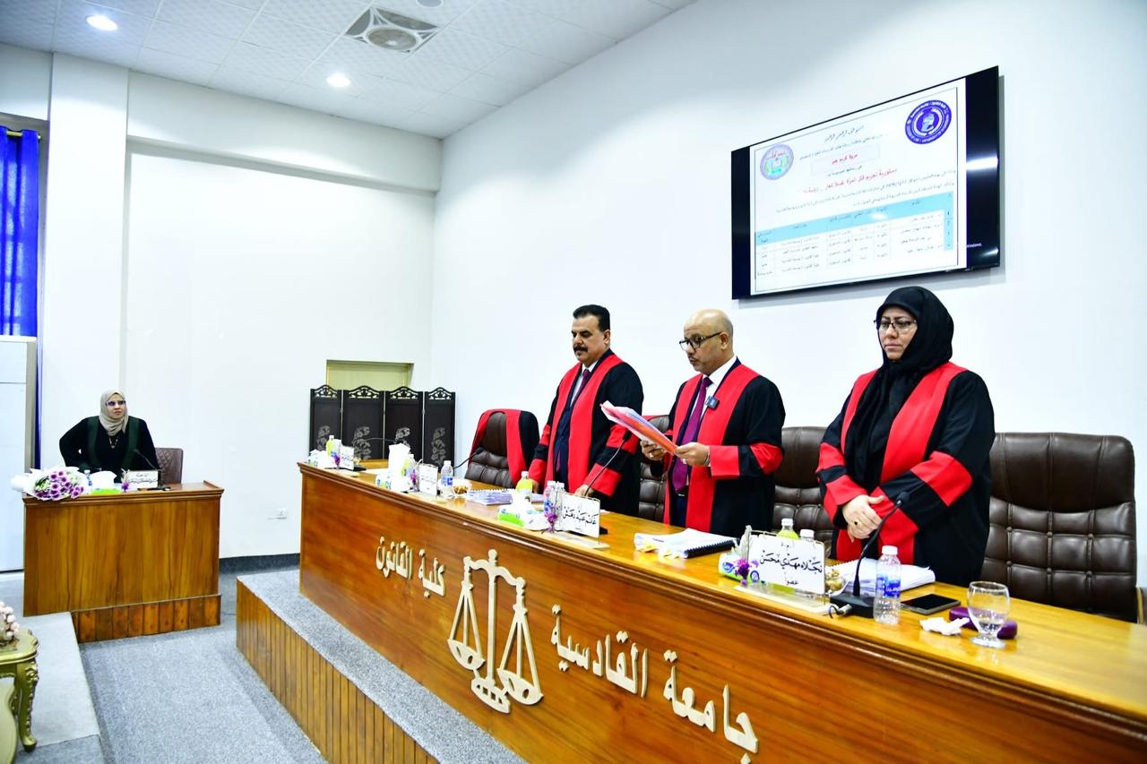 شاركت التدريسية في قسم القانون بمعهد العلمين للدراسات العليا أ.م.د. نجلاء مهدي محسن في عضوية لجنة مناقشة رسالة الماجستير في كلية القانون بجامعة القادسية حملت عنوان " دستورية تجريم قتل المرأة غسلاً للعار - دراسة مقارنة" وتقدمت بها الطالبة "مروة كريم جبر"، وناقشت الرسالة العلاقة القانونية والدستورية بين نص المادة (409) من قانون العقوبات العراقي رقم (111) لسنة 1969 المعدل، وأحكام المادتين (14) و(15) من دستور جمهورية العراق لسنة 2005، وبعد مناقشة مستفيضة تم قبول الرسالة.