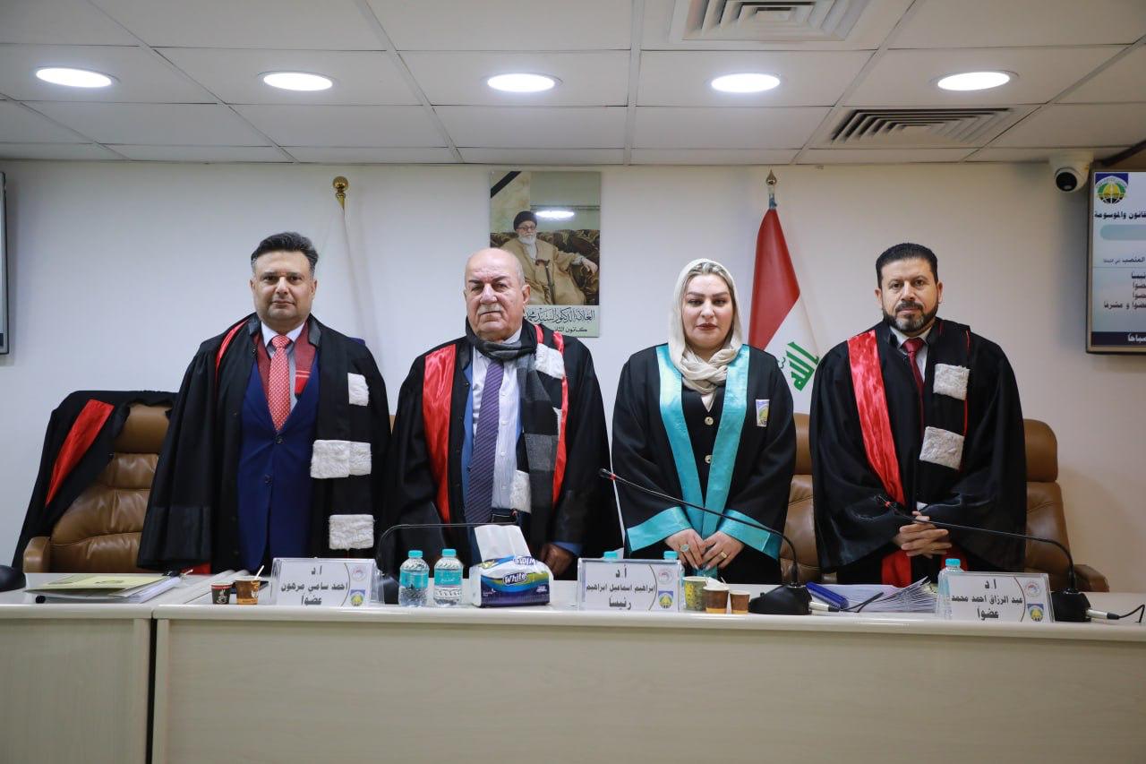 جرت في قسم القانون الخاص بمعهد العلمين للدراسات العليا، الاربعاء ٢٨ كانون الثاني 2026، مناقشة رسالة الماجستير الموسومة "التامين على المصنفات الفكرية الرقمية التجارية - دراسة مقارنة" للطالبة "رانيا مبدر عبد الهادي" و ترأس لجنة المناقشة ا.د ابراهيم اسماعيل ابراهيم رئيس قسم القانون الخاص بمعهد العلمين، وضمت لجنة المناقشة ا.د احمد سامي مرهون من كلية القانون جامعة الكوفة، وا.د عبد الرزاق احمد محمد من معهد العلمين، و ا.م.د لطيف جبر كوماني من معهد العلمين عضواً ومشرفاً، وبعد مناقشة مستفيضة تم إجازة الرسالة.