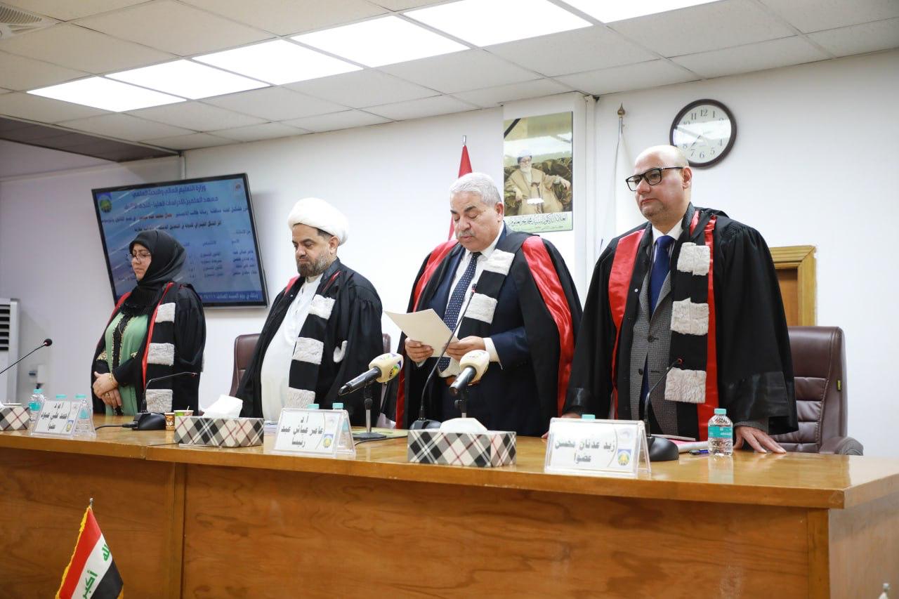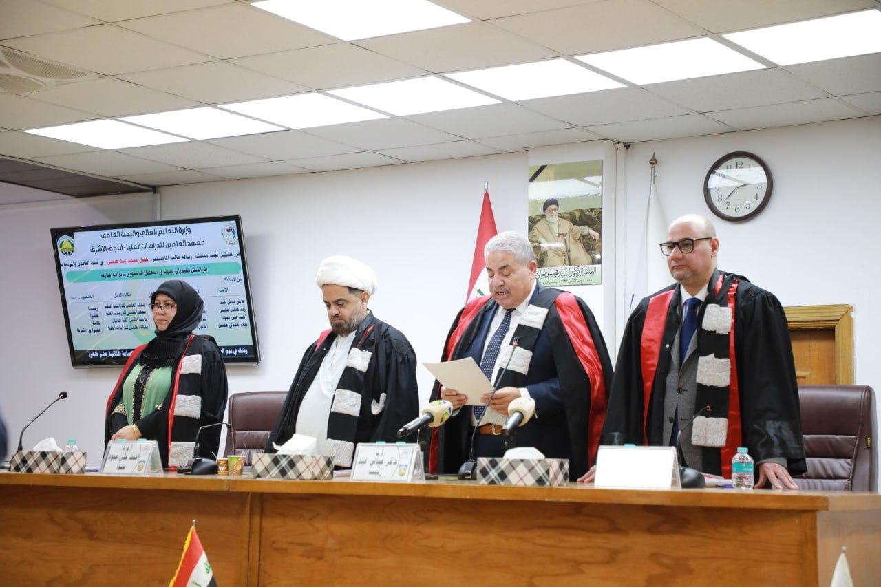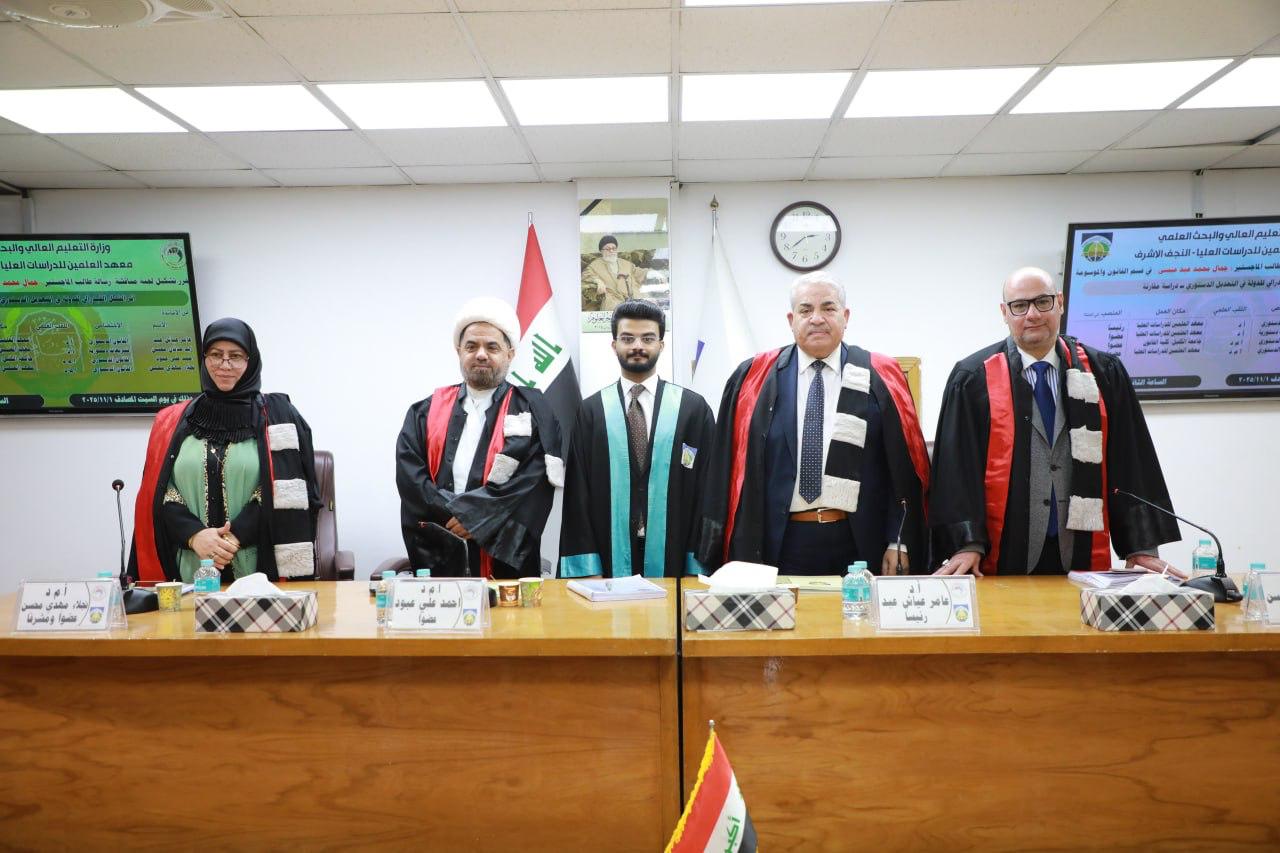 جرت في قسم القانون بمعهد العلمين للدراسات العليا، السبت ١ تشرين الثاني ٢٠٢٥، مناقشة رسالة الماجستير الموسومة "أثر الشكل الفيدرالي للدولة في التعديل الدستوري _ دراسة مقارنة" للطالب "جمال محمد عبد عيسى" و ترأس لجنة المناقشة ا.د عامر عياش عبد من معهد العلمين، وضمت لجنة المناقشة ا.د زيد عدنان محسن عميد معهد العلمين للدراسات العليا، و ا.م.د احمد علي عبود من كلية القانون جامعة الكفيل، و ا.م.د نجلاء مهدي محسن من معهد العلمين عضواً و مشرفاً، وبعد مناقشة مستفيضة تم إجازة الرسالة.