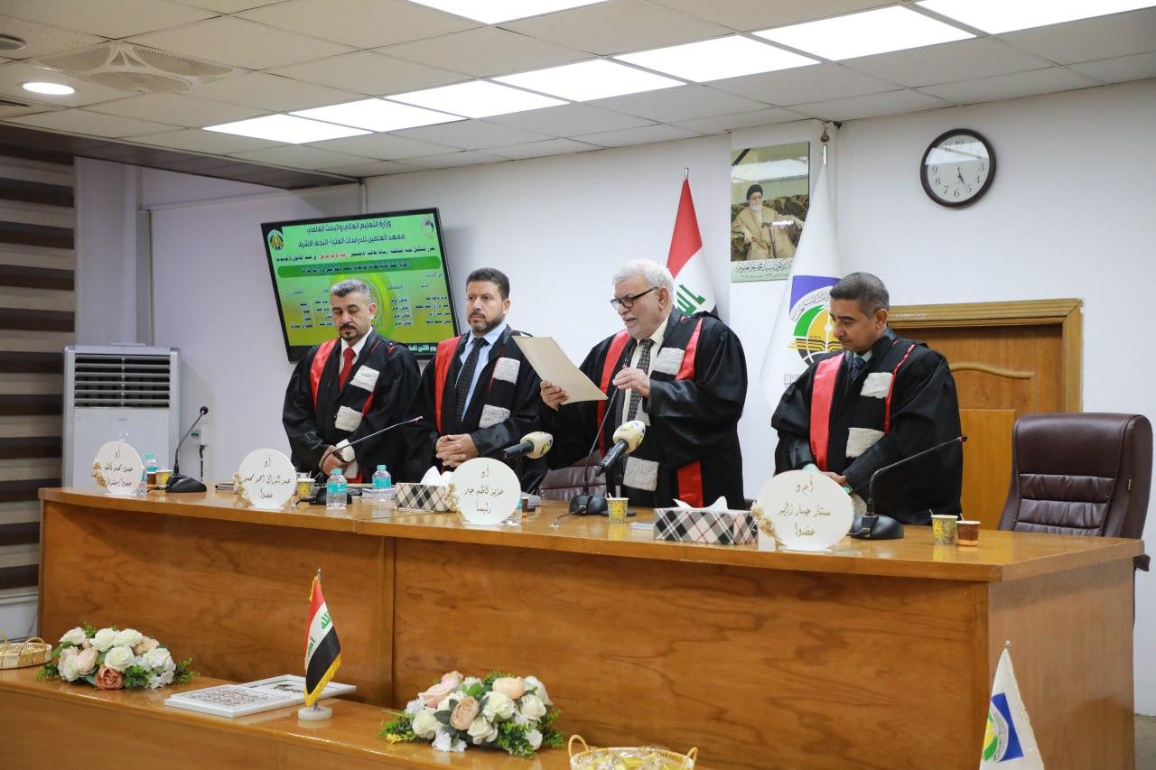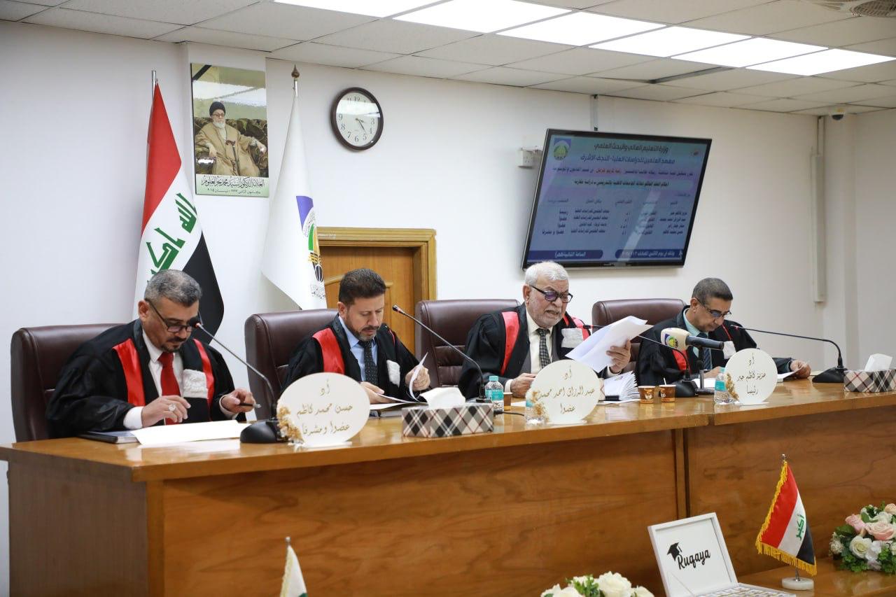 جرت في قسم القانون الخاص بمعهد العلمين للدراسات العليا، الاثنين ٣ تشرين الثاني ٢٠٢٥، مناقشة رسالة الماجستير الموسومة "احكام العقد الحاكم لعلاقة الجامعات الاهلية بالتدريسي_ دراسة مقارنة" للطالبة "رقية كريم خزعل" و ترأس لجنة المناقشة ا.د عزيز كاظم جبر من معهد العلمين، وضمت لجنة المناقشة ا.د عبد الرزاق احمد محمد من معهد العلمين، و ا.م.د ستار جبار زاير من كلية القانون جامعة كربلاء، و ا.د حسن محمد كاظم من معهد العلمين عضواً و مشرفاً، وبعد مناقشة مستفيضة تم إجازة الرسالة.