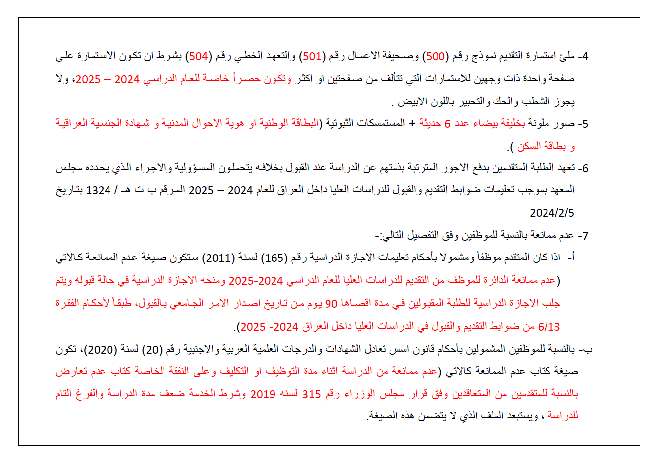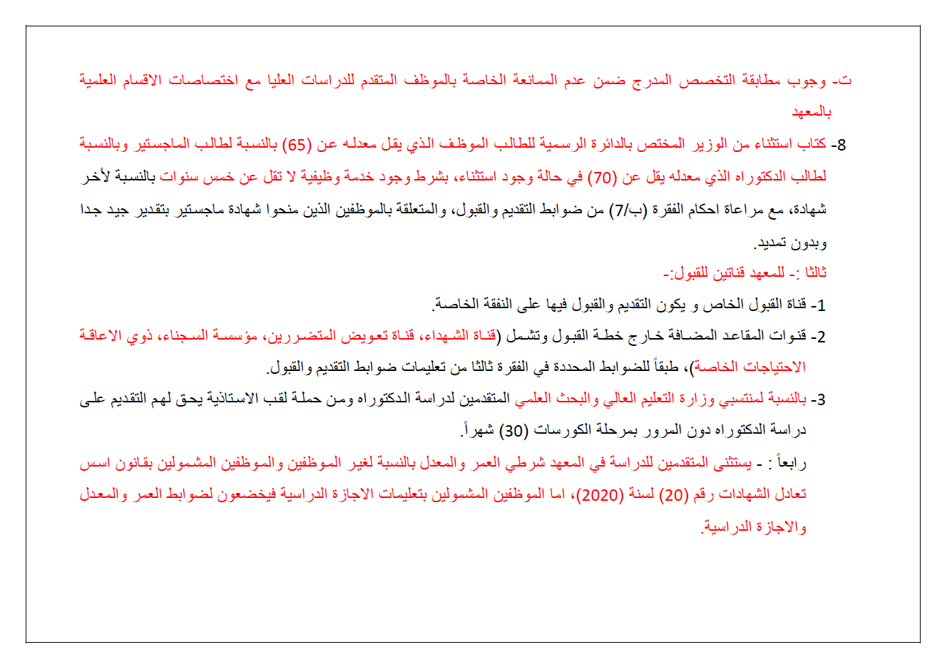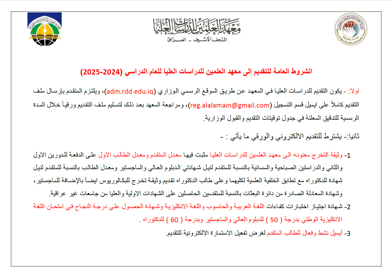 شروط التقديم لمعهد العلمين للدراسات العليا 2024 - 2025