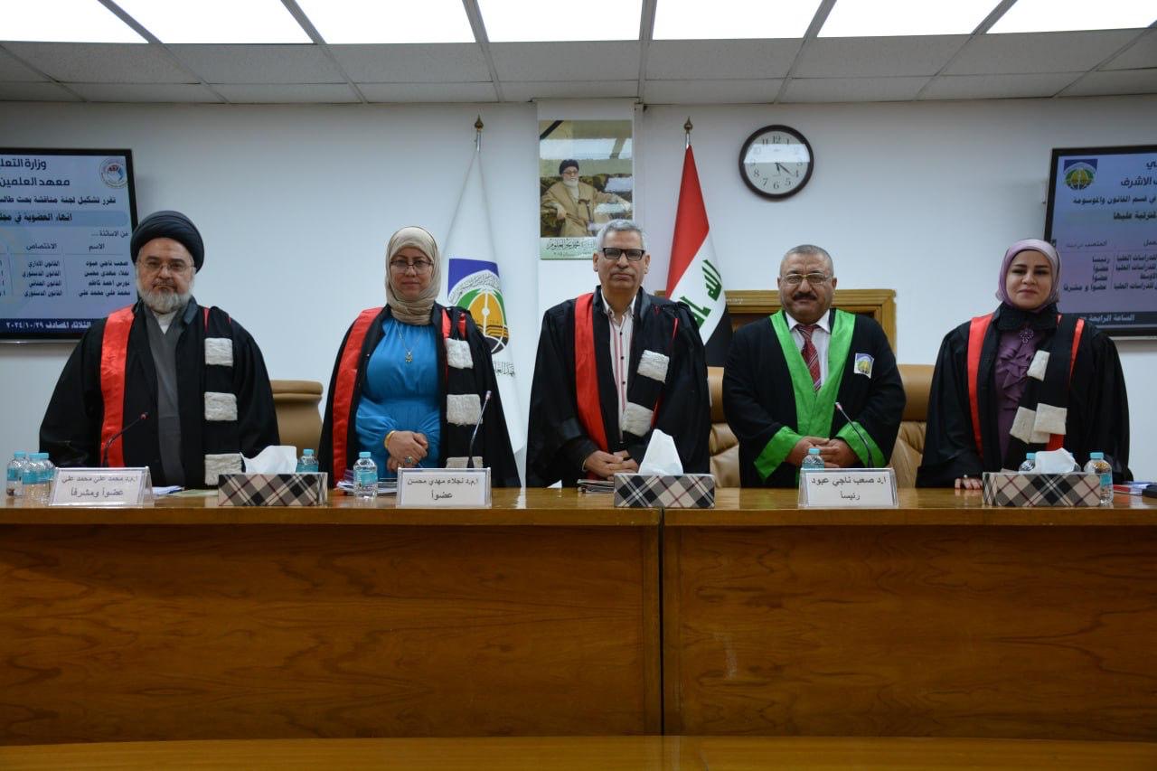 جرت في قسم القانون بمعهد العلمين للدراسات العليا، الثلاثاء ٢٩ تشرين الأول 2024، مناقشة بحث الدبلوم الموسوم "إنهاء العضوية في مجلس النواب العراقي والاثار المترتبة عليها" للطالب "غزوان صالح عمر" وضمت لجنة المناقشة اساتذة من جامعة الفرات الاوسط ومعهد العلمين للدراسات العليا، وبعد مناقشة مستفيضة تم إجازة البحث.