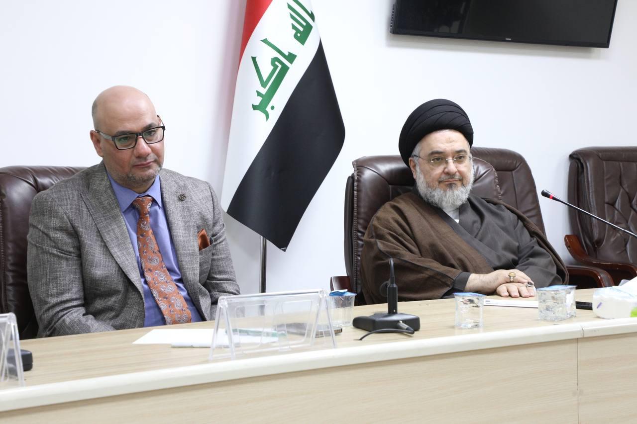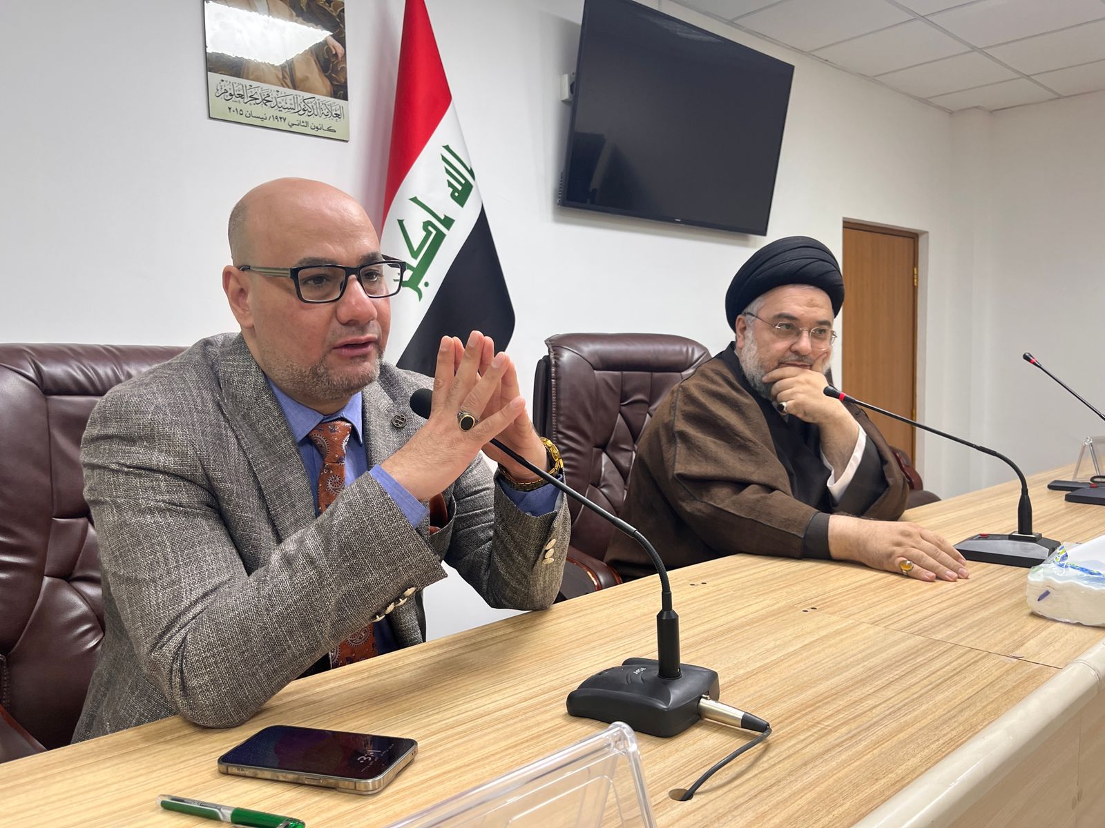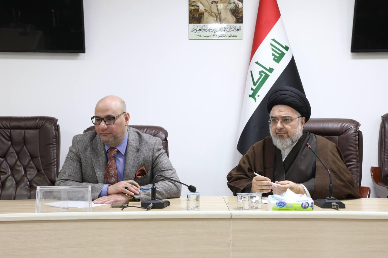 سعيا لخلق اجواء دراسية مناسبة، وتذليل الصعاب التي تواجه الطلبة في المعهد في كافة المجالات، والاستماع لملاحظاتهم ومطالبهم، التقى الامين العام لمؤسسة بحر العلوم الخيرية الدكتور السيد محمد علي بحر العلوم ممثلا عن الجهة المؤسسة، وعميد معهد العلمين للدراسات العليا الاستاذ الدكتور زيد عدنان العكيلي، السبت 14 كانون الاول 2024، طلبة قسم الاعلام في المعهد، واجروا حوارا مباشرا وصريحا معهم، حيث تم الاستماع الى ملاحظات الطلبة ومطالباتهم بشان العملية العلمية والمناهج الدراسية والخدمات الاخرى التي يوفرها المعهد، فيما تم توزيع استبانة الكترونية على الطلبة لمعرفة ملاحظاتهم بشكل مفصل وصريح حول مجمل العملية التعليمية في المعهد. وسيتم اجراء مقابلات مشابهة مع كافة طلبة المعهد، ولجميع الاقسام، ولمرحلتي الماجستير والدكتوراه.