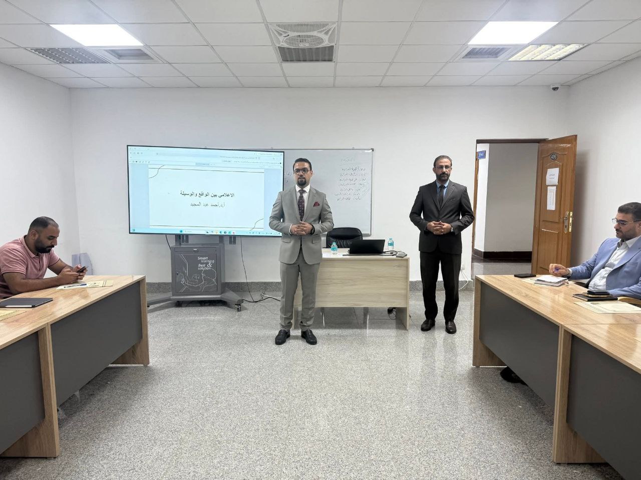 وقال أ.م.د. أحمد الرماحي – مدير المركز "تأتي هذه الدورة في سياق البرنامج التدريبي الذي أعده مركزنا بالتواصل مع الجهة المؤسسة والسيد العميد لتطوير مهارات طلبة المعهد وأصحاب الشهادات العليا والعاملين في وسائل الاعلام والشباب الراغبين بتطوير قدراتهم في الظهور الإعلامي".