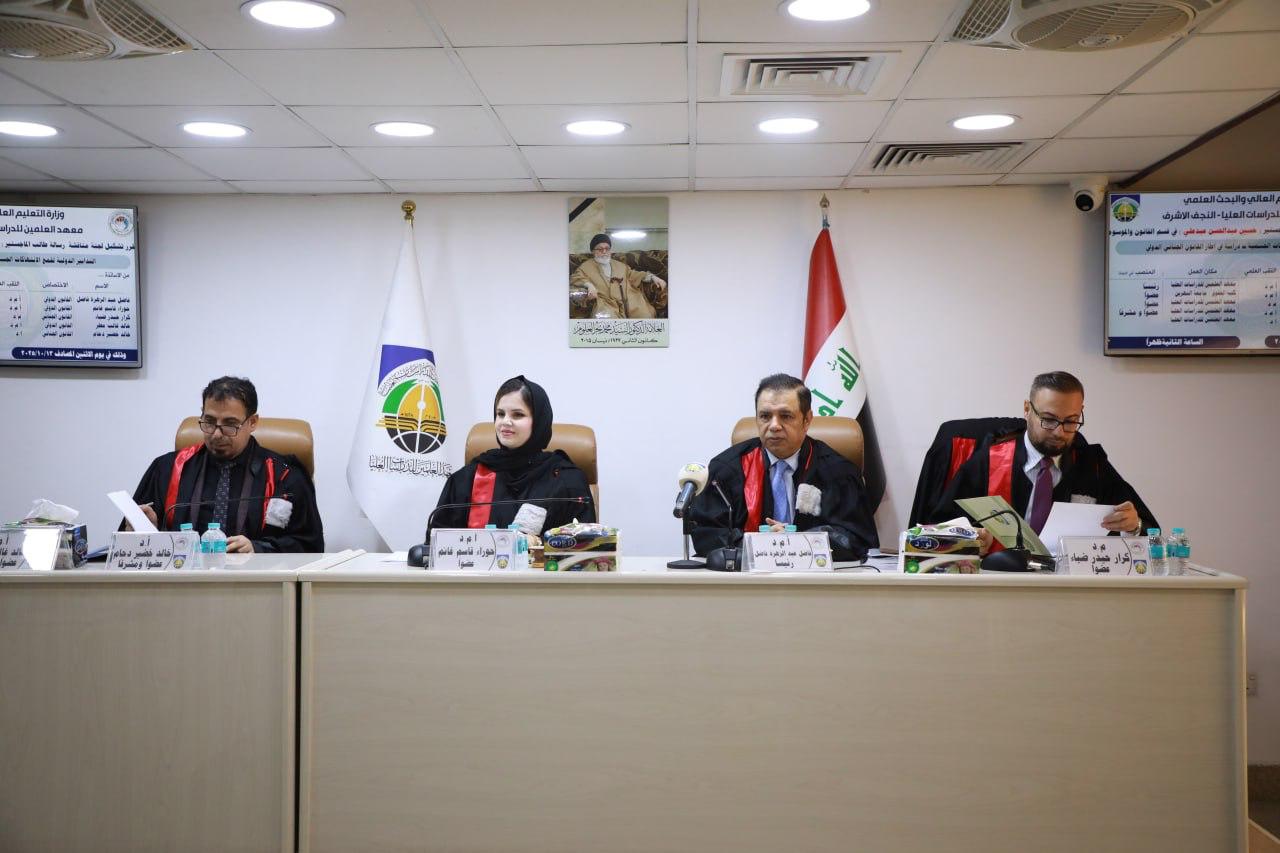 جرت في قسم القانون بمعهد العلمين للدراسات العليا، الاثنين 13 تشرين الأول 2025، مناقشة رسالة الماجستير الموسومة "التدابير الدولية لقمع الانتهاكات الجسيمة - دراسة في إطار القانون الجنائي الدولي" للطالب "حسين عبد الحسن عبد علي" و ترأس لجنة المناقشة ا.د فاضل عبد الزهرة فاضل من معهد العلمين، وضمت لجنة المناقشة ا.م.د حوراء قاسم غانم من كلية الحقوق جامعة النهرين، و م.د كرار حيدر ضياء من معهد العلمين، و ا.م.د خالد غالب مطر و ا.د خالد خضير دحام من معهد العلمين عضوان و مشرفان، وبعد مناقشة مستفيضة تم إجازة الرسالة.