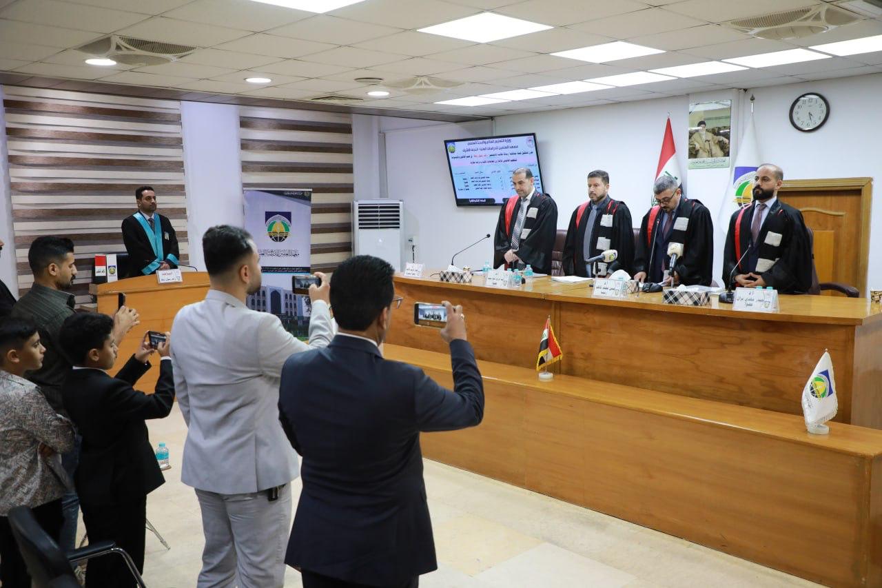 جرت في قسم القانون الخاص بمعهد العلمين للدراسات العليا، الاحد 12 تشرين الأول 2025، مناقشة رسالة الماجستير الموسومة "التنظيم القانوني للانذار في المعاملات المالية - دراسة مقارنة" للطالب "رافد رسول رباط" و ترأس لجنة المناقشة ا.د حسن محمد كاظم عميد كلية القانون جامعة بابل، وضمت لجنة المناقشة ا.د حيدر مهدي نزال من كلية الحقوق جامعة النهرين، وأ.د عبد الرزاق احمد محمد من معهد العلمين، و ا.د عمار كريم كاظم من كلية القانون جامعة الكوفة عضواً ومشرفاً، وبعد مناقشة مستفيضة تم إجازة الرسالة.