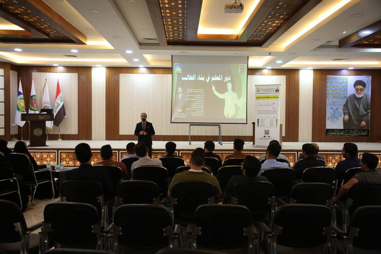مركز العلمين للتعليم المستمر في معهد العلمين للدراسات العليا ومنسقية النجف في قسم التنمية والتأهيل الاجتماعي للشباب التابع للعتبة الحسينية المقدسة ينظمان ورشة تفاعلية بعنوان "دور المعلم في بناء الطالب" يوم السبت 2025/10/18 بمشاركة نخبة من التربويين في المدارس الحكومية والأهلية.