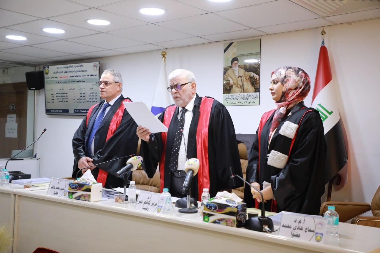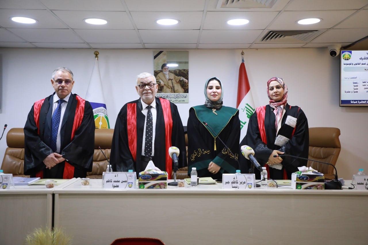 جرت في قسم القانون الخاص بمعهد العلمين للدراسات العليا، الاربعاء 15 تشرين الأول 2025، مناقشة رسالة الماجستير الموسومة "فلسفة التكاملية في العلاقات الخاصة الدولية - دراسة مقارنة" للطالبة "منار حيدر سبتي" و ترأس لجنة المناقشة ا.د عزيز كاظم جبر من معهد العلمين، وضمت لجنة المناقشة ا.د حسن محمد كاظم من معهد العلمين، و ا.م.د سماح هادي محمد من كلية الحقوق جامعة النهرين، و ا.د عبد الرسول عبد الرضا من كلية القانون جامعة بابل عضواً ومشرفاً، وبعد مناقشة مستفيضة تم إجازة الرسالة.