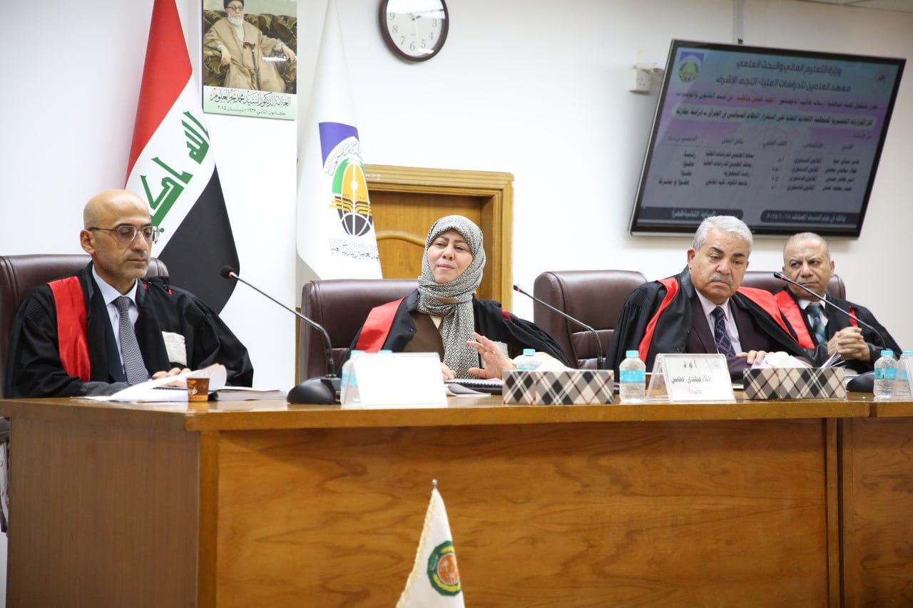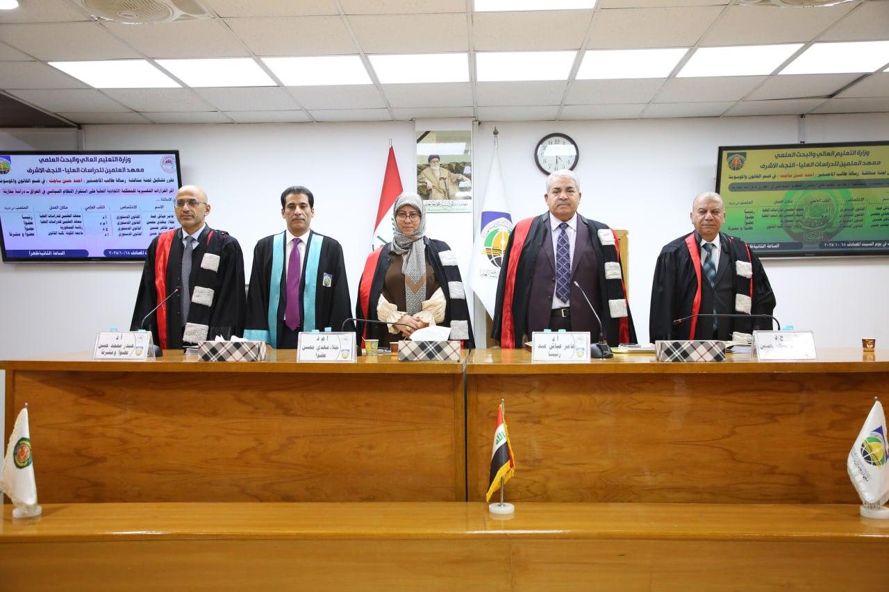 جرت في قسم القانون بمعهد العلمين للدراسات العليا، السبت 18 تشرين الأول 2025، مناقشة رسالة الماجستير الموسومة "أثر القرارات التفسيرية للمحكمة الاتحادية العليا على استقرار النظام السياسي في العراق - دراسة مقارنة" للطالب" احمد حسن ساجت " و ترأس لجنة المناقشة ا.د عامر عياش عبد من معهد العلمين، وضمت لجنة المناقشة ا.م.د نجلاء مهدي محسن من معهد العلمين، و الخبير الدكتور امير طاهر حسين من رئاسة الجمهورية، و ا.د حيدر محمد حسن من كلية القانون جامعة الكوفة عضواً و مشرفاً، وبعد مناقشة مستفيضة تم إجازة الرسالة.
