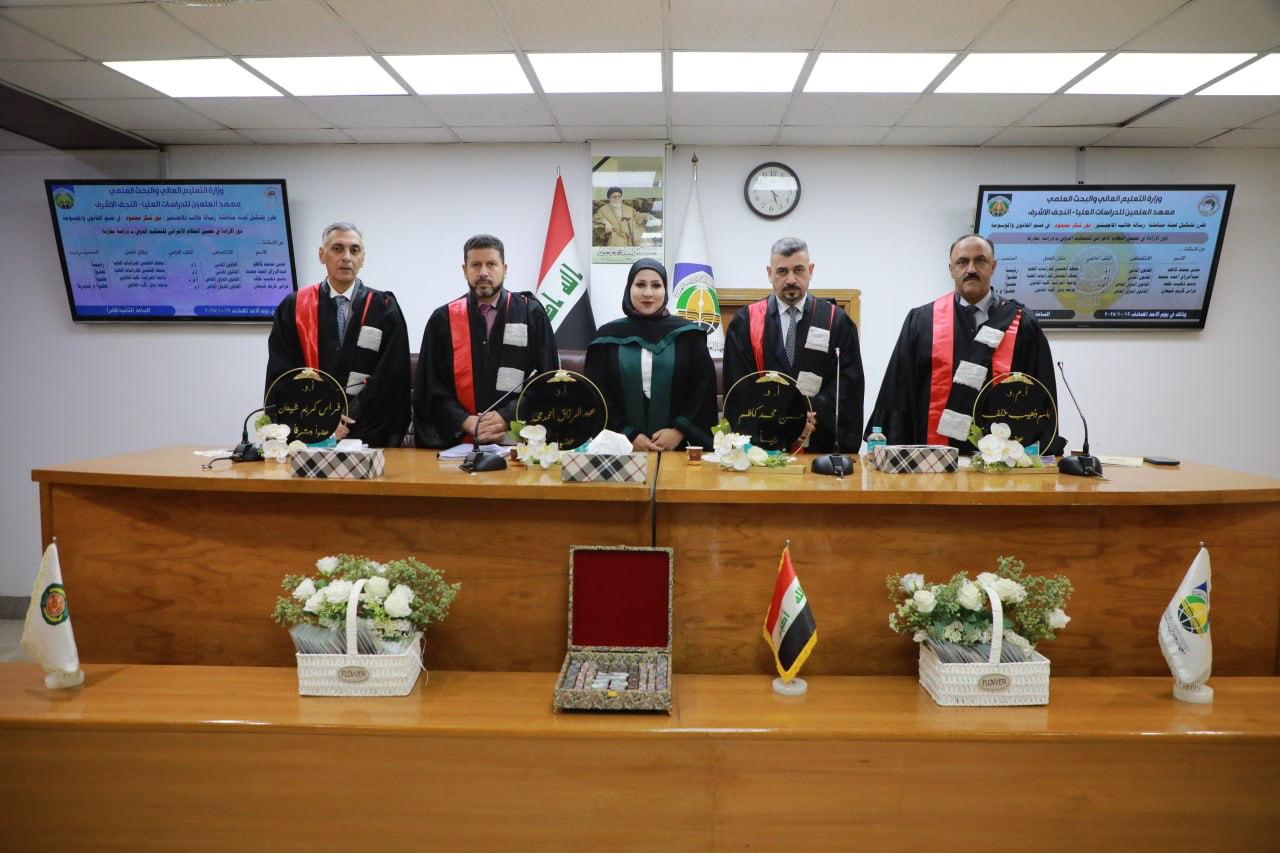 جرت في قسم القانون الخاص بمعهد العلمين للدراسات العليا، الاحد 19 تشرين الأول 2025، مناقشة رسالة الماجستير الموسومة "دور الإرادة في تعيين النظام الاجرائي للتحكيم الدولي - دراسة مقارنة" للطالبة" نور شكر محمود" و ترأس لجنة المناقشة ا.د حسن محمد كاظم من معهد العلمين، وضمت لجنة المناقشة ا.د عبد الرزاق احمد محمد من معهد العلمين، و ا.م.د باسم ذهيب خلف من كلية القانون والعلوم السياسية الجامعة العراقية، و ا.د فراس كريم شيعان من كلية القانون جامعة بابل عضواً و مشرفاً، وبعد مناقشة مستفيضة تم إجازة الرسالة.