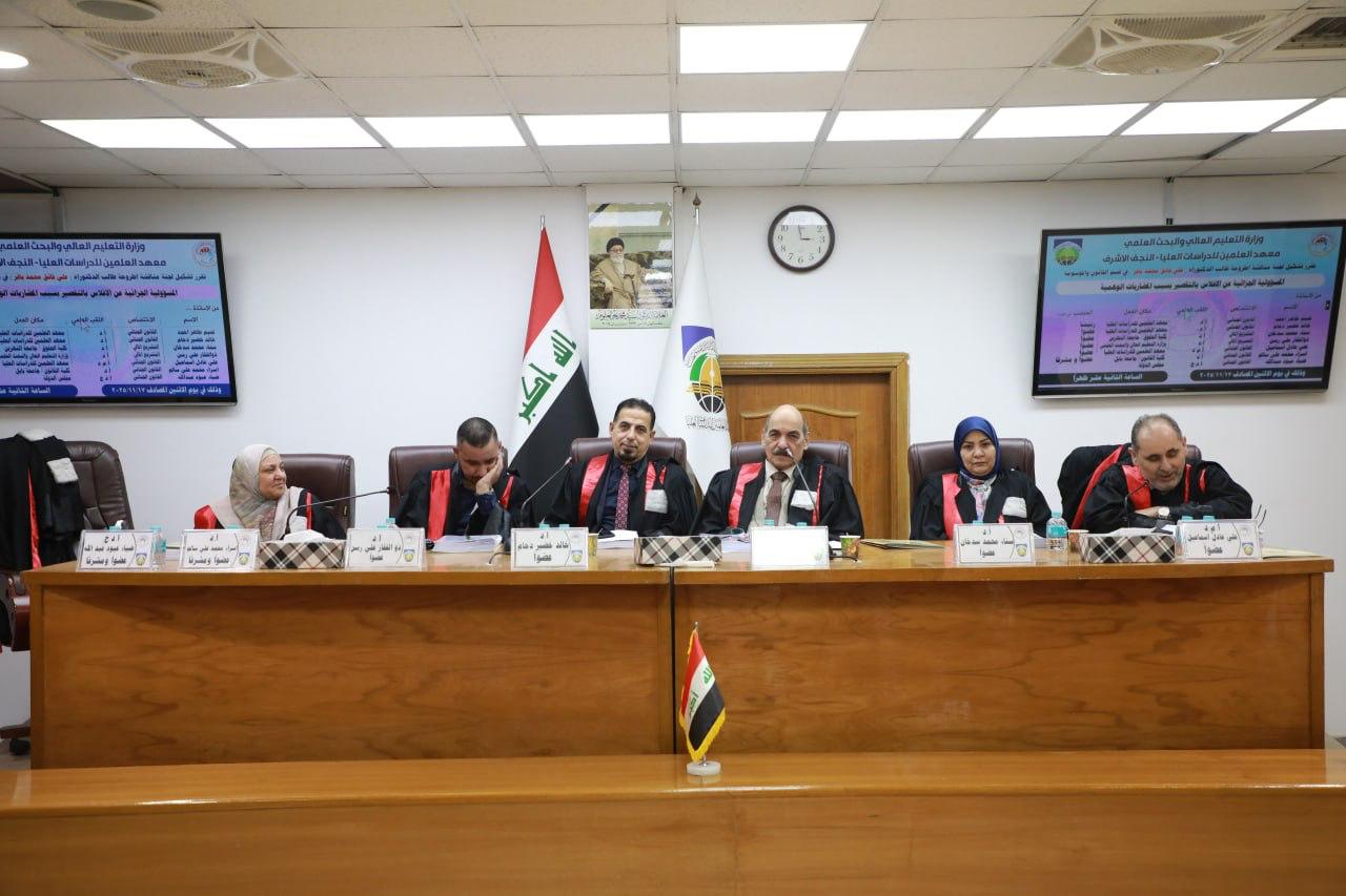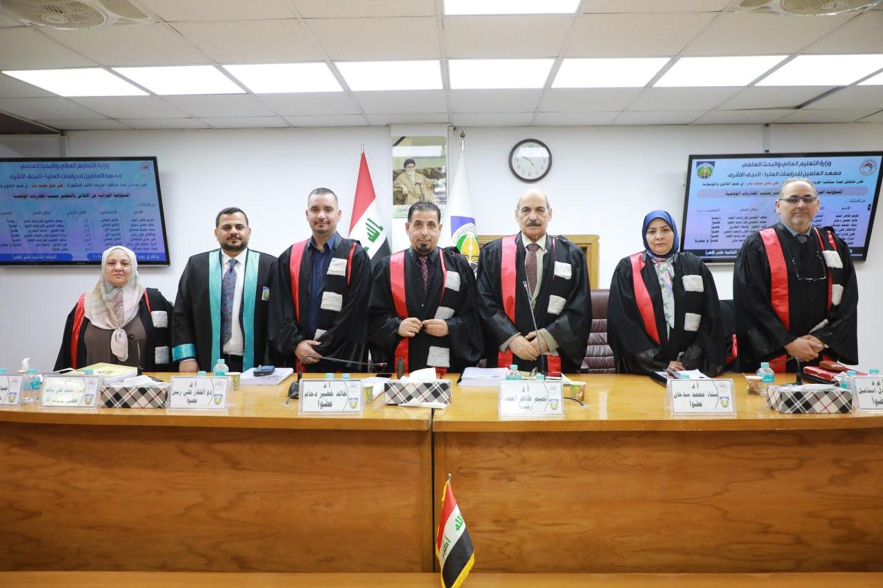 جرت في قسم القانون بمعهد العلمين للدراسات العليا، الاثنين 17 تشرين الثاني 2025، مناقشة اطروحة الدكتوراه الموسومة "المسؤولية الجزائية عن الافلاس بالتقصير بسبب المضاربات الوهمية" للطالب "علي فائق محمد باقر" و ترأس لجنة المناقشة ا.د تميم طاهر احمد من معهد العلمين، وضمت لجنة المناقشة ا.د خالد خضير دحام المعاون الاداري لعمادة معهد العلمين، و ا.د سناء محمد سدخان من كلية الحقوق جامعة النهرين، و ا.د ذو الفقار علي رسن من وزارة التعليم العالي والبحث العلمي، وا.م.د علي عادل اسماعيل المعاون العلمي لعمادة معهد العلمين، وا.د اسراء محمد علي سالم من كلية القانون جامعة بابل و ا.د الخبير ضياء عبود عبد الله من مجلس الدولة عضوان و مشرفان، وبعد مناقشة مستفيضة تم إجازة الاطروحة.